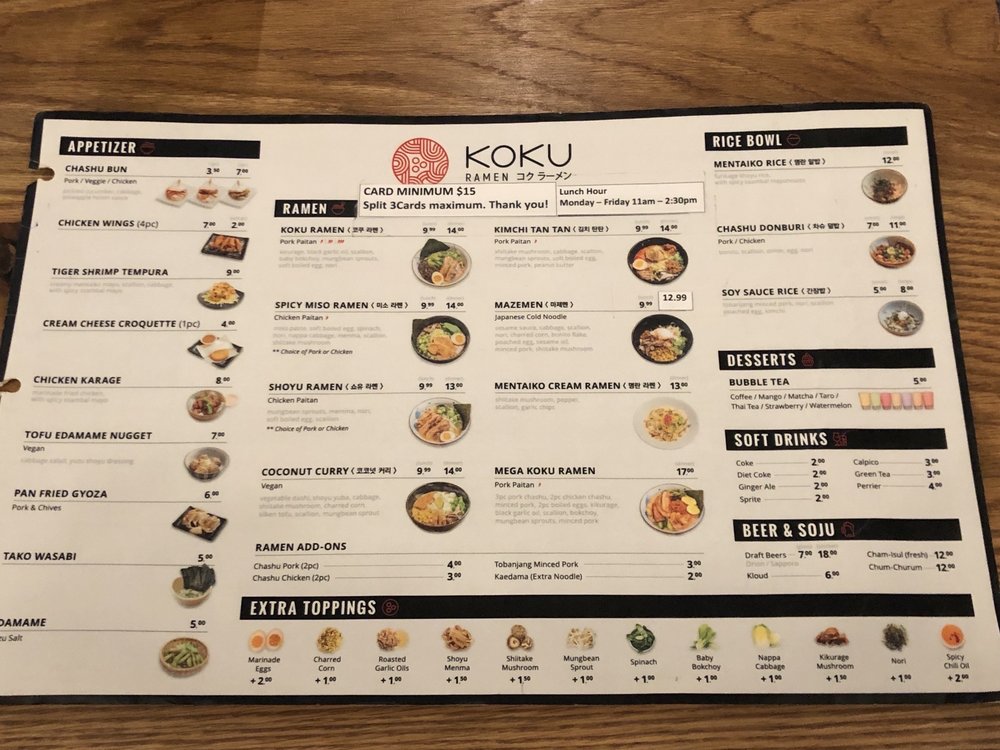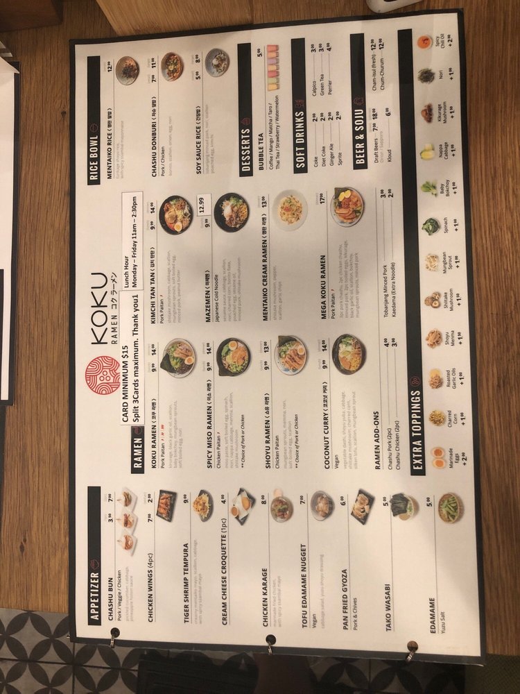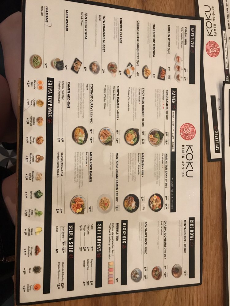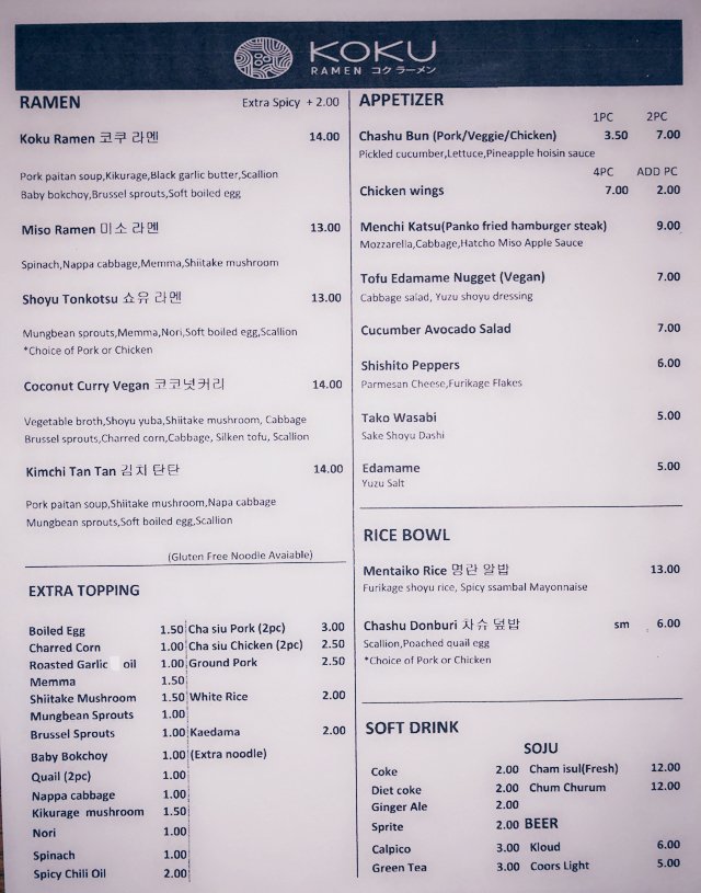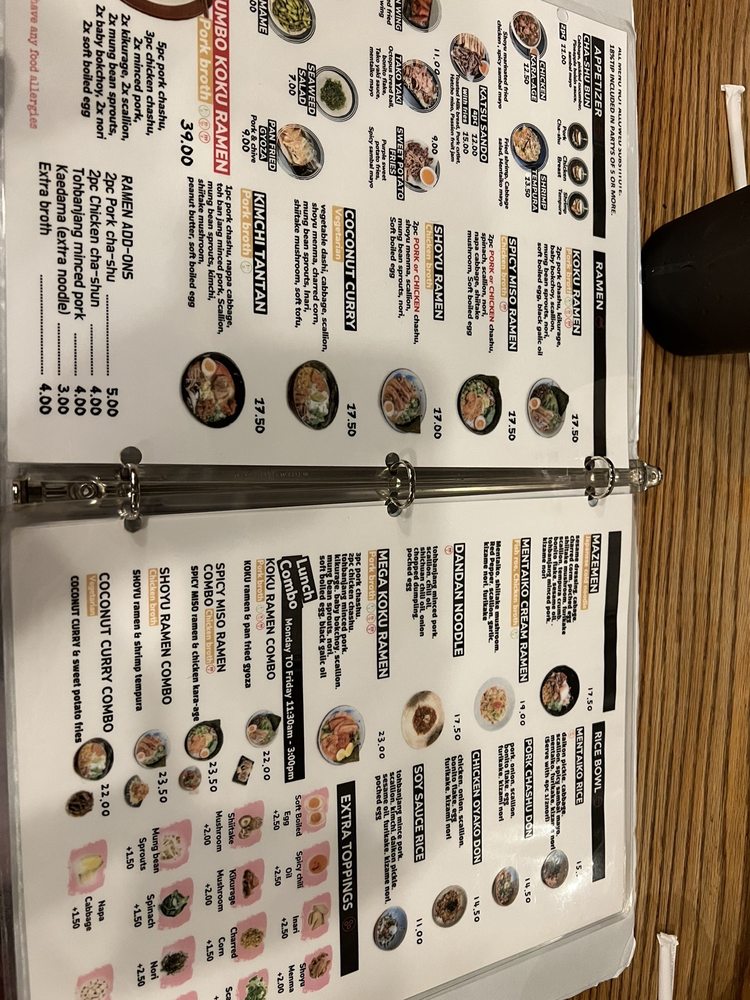 Koku Ramen Menu (2025 Update)