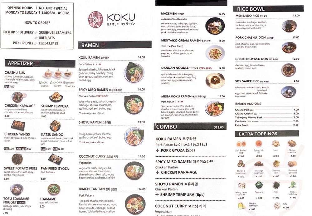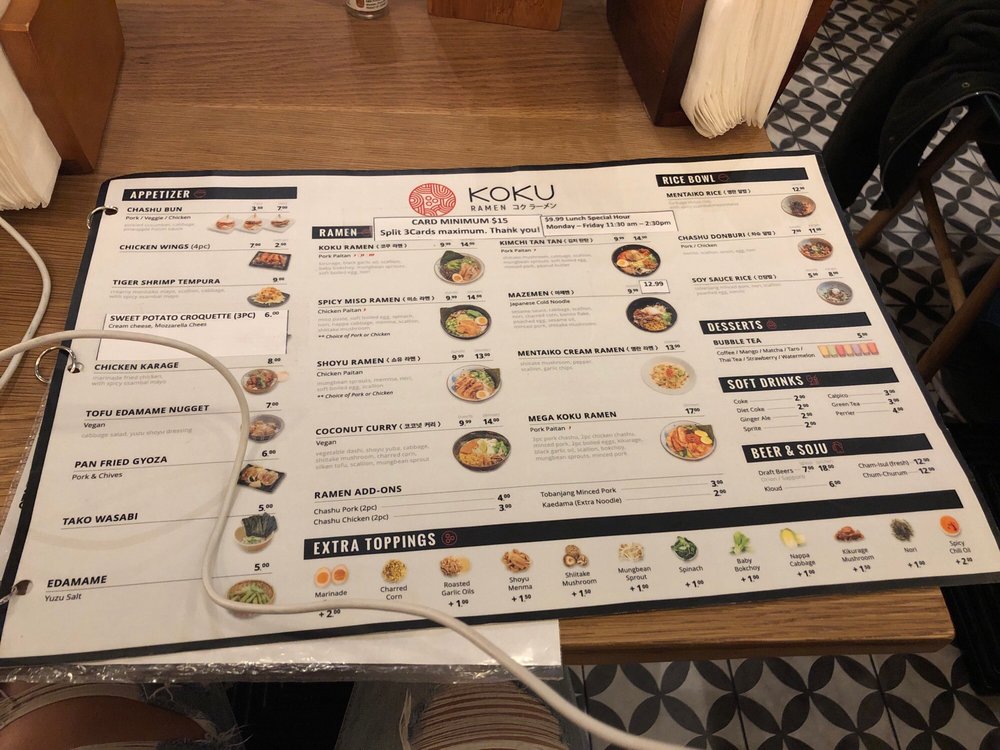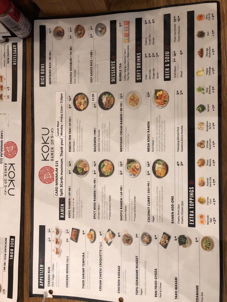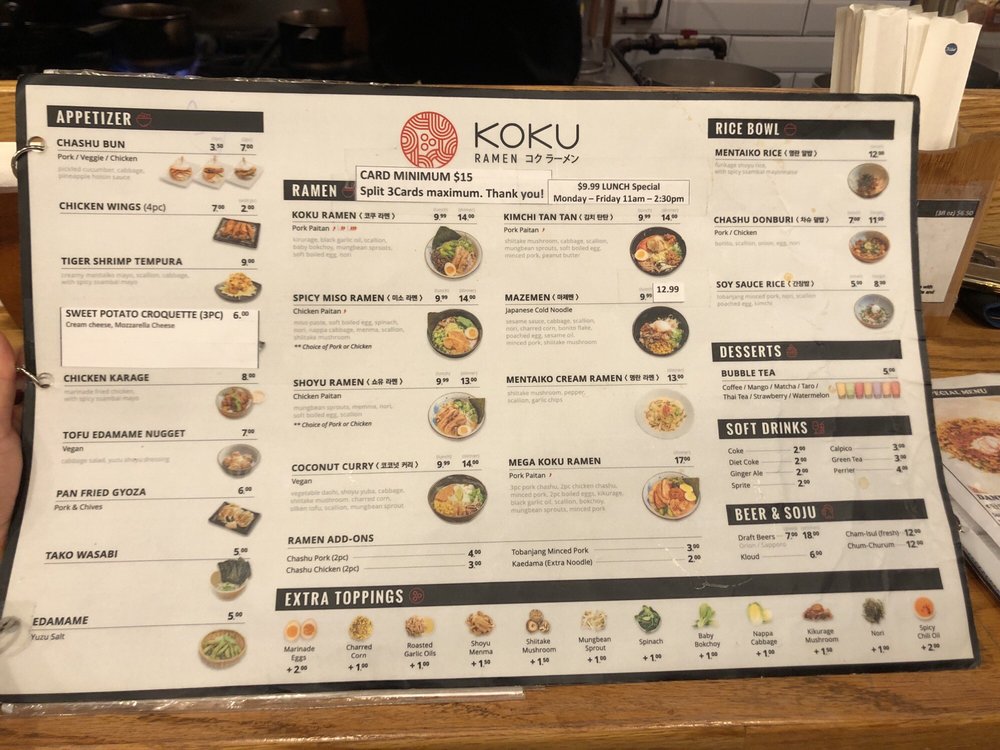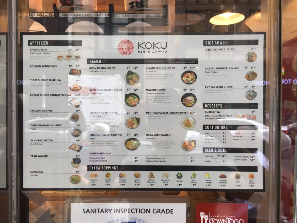 Koku Ramen Menu (2025 Update)
